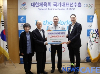 [뉴스카페]대한체육회(회장 이기흥)는 지난 5일 오후 2시 진천 국가대표선수촌에서 피닉스다트(대표 이승윤)와 국가대표 선수단을 격려하기 위해 '다트게임기 전달식‘을 개최하였다.