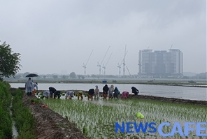 궂은 날씨에도 불구하고 가족 단위 참가자들은 직접 손 모내기를 체험하며 선조들의 전통 모내기 방법, 쌀의 생산과정 등을 배우는 시간을 가졌다.