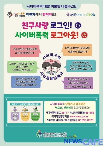 [뉴스카페]인천광역시교육청(교육감 도성훈)은 6월 19일~7월 7일 학교폭력예방 어울림 나눔주간2 캠페인 ‘친구사랑 로그인! 사이버폭력 로그아웃!’을 실시한다.