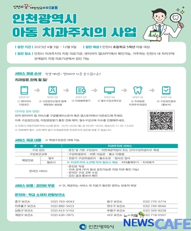 [뉴스카페] 인천광역시(시장 유정복)는 영구치열이 자리잡는 시기인 초등학교 5학년을 대상으로 ‘아동 치과 주치의 사업’을 추진 중이다.