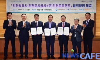 [뉴스카페]인천광역시(시장 유정복)는 28일 시청 접견실에서 인천로봇랜드 조성사업의 조기 정상화를 위해 인천시, 인천도시공사, ㈜인천로봇랜드(특수목적법인)가 합의약정을 체결했다고 밝혔다.