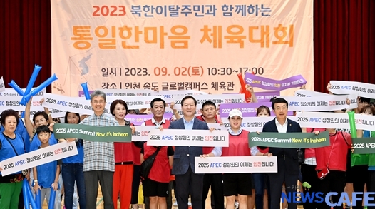 [뉴스카페]인천광역시(시장 유정복)는 지난 2일 인천글로벌캠퍼스체육관에서 ‘북한이탈주민과 함께 하는 2023 통일한마음체육대회’를 개최했다고 밝혔다.