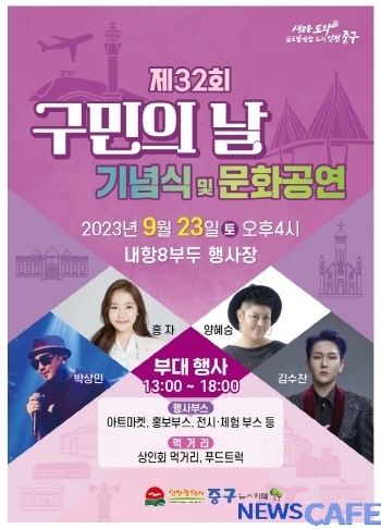 이어 23일에는 오후 1시 30분부터 버스킹·유랑버스 공연, 지역예술인 공연, 중구 여성합창단 공연 등 다채로운 공연 행사가 펼쳐지고, 오후 4시 30분부터 구민의 날 기념식이 진행될 예정이다.