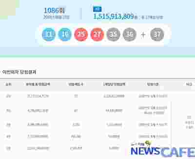 [뉴스카페]23일 추첨한 동행복권 1086회 로또6/45 1등 당첨자는 1인당 15억1,591만원씩의 당첨금을 받는다.
