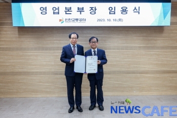 [뉴스카페]인천교통공사(사장 김성완)는 지난달 4일자 상임이사(영업본부장) 재공모 결과, 박병철(62) 전 인천스마트시티(주) 대표이사를 10일자로 영업본부장에 임명했다고 밝혔다.