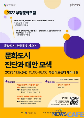 [뉴스카페]인천 부평구(구청장 차준택) 문화재단이 오는 16일 오후 3시 부평아트센터에서 ‘문화도시, 안녕하신가요?’란 주제로 ‘부평문화포럼’을 개최한다.