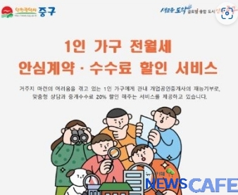 [뉴스카페]인천시 중구(구청장 김정헌)는 올해 3월부터 ‘1인 가구 전·월세 안심계약 및 수수료 할인 서비스’를 확대 시행한다고 4일 밝혔다.