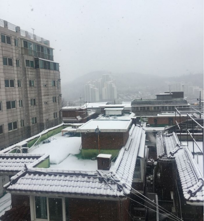 서울에 눈이 내린 것은 지난해보다 7일 평년보가 사흘 늦게 내렸다.