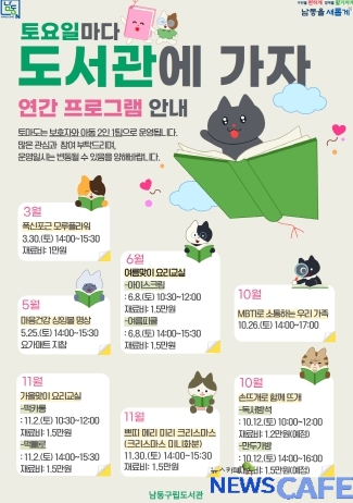 [뉴스카페]인천시 남동구립도서관은 이달부터 11월까지 ‘토요일마다 도서관에 가자(토마도)’ 프로그램을 운영한다고 21일 밝혔다.
