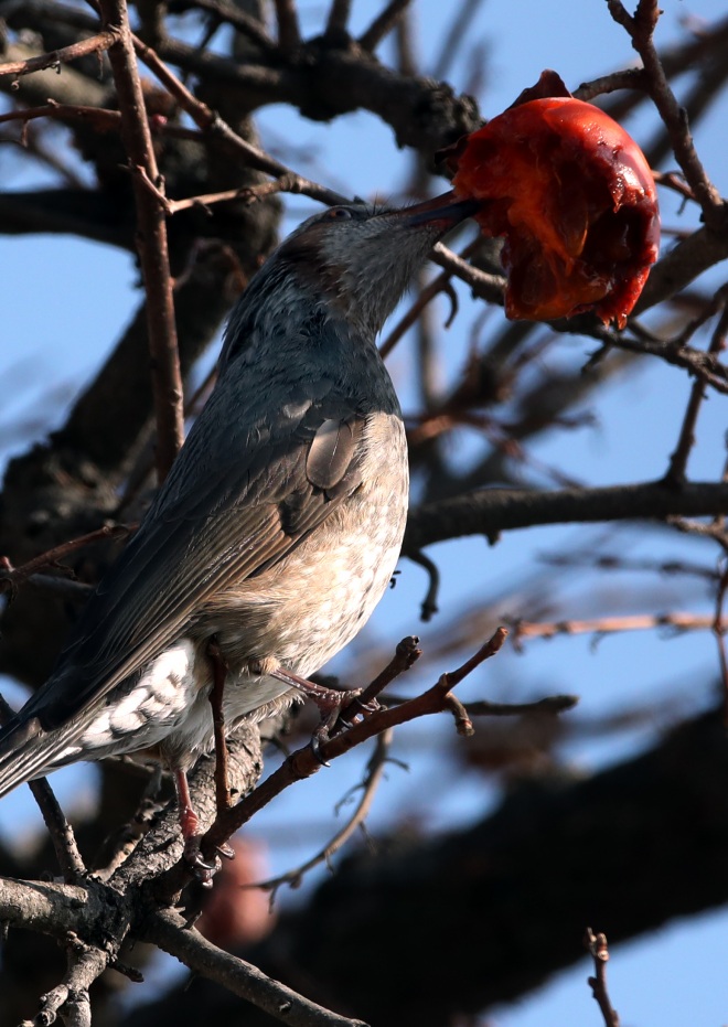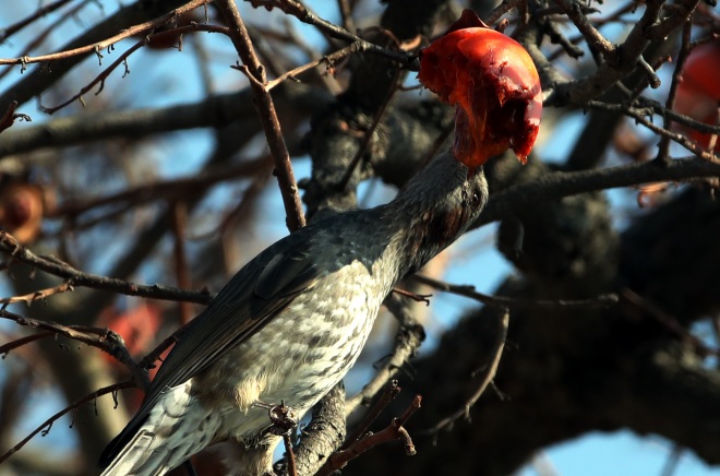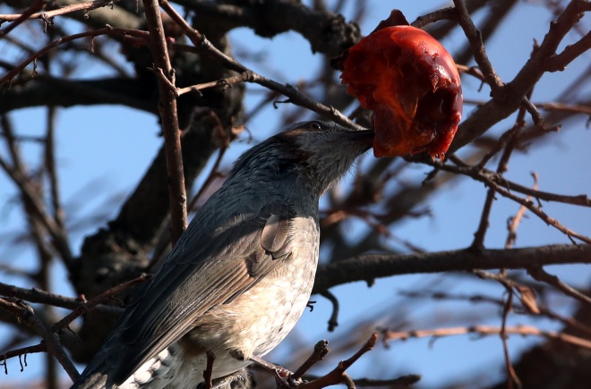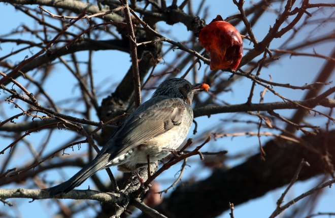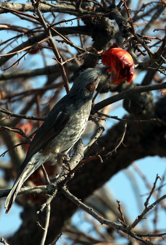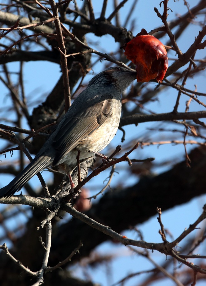 [뉴스카페/이경문 기자] 26일 전남 강진군 강진읍의 한 농가마당의 감나무를 찾은 직박구리가 잘 익은 홍시만을 골라가며 배를 채우고 있다.