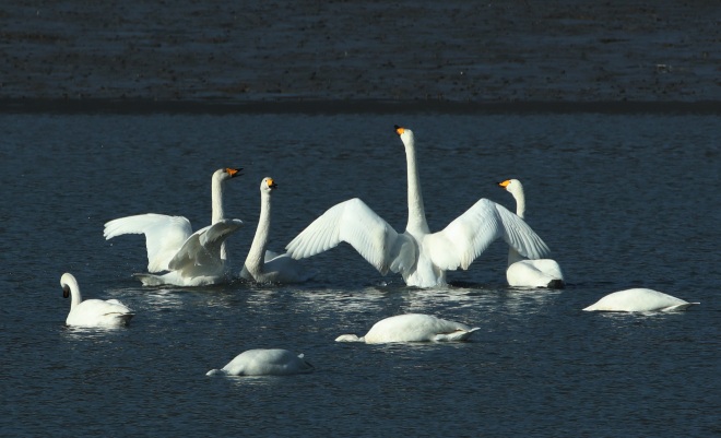 [뉴스카페/이경문기자] 다소 포근한 날씨를 보인 2일 청정해역인 전남 강진군 강진만(灣)에 월동 둥지를 튼 큰고니(천연기념물 제201-2호)가 한가로이 노닐고 있다.