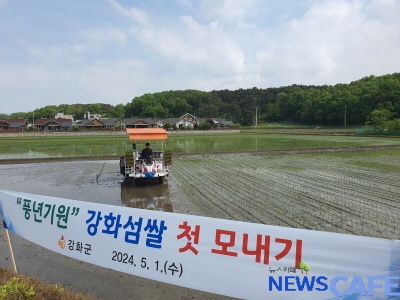 [뉴스카페]강화군은 지난 1일 강화읍 용정리 김학빈 농가에서 올해 첫 모내기를 실시하며 본격적인 벼 농사의 시작을 알렸다고 밝혔다.