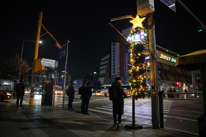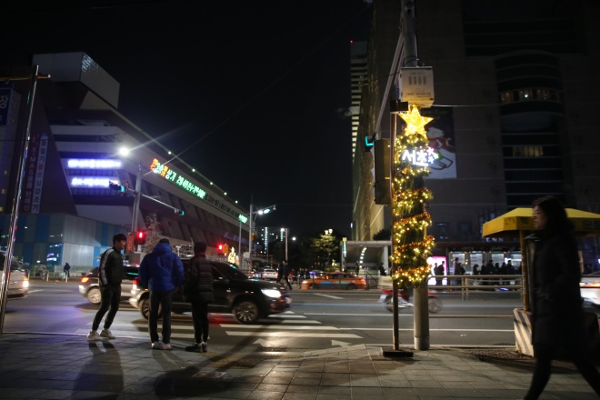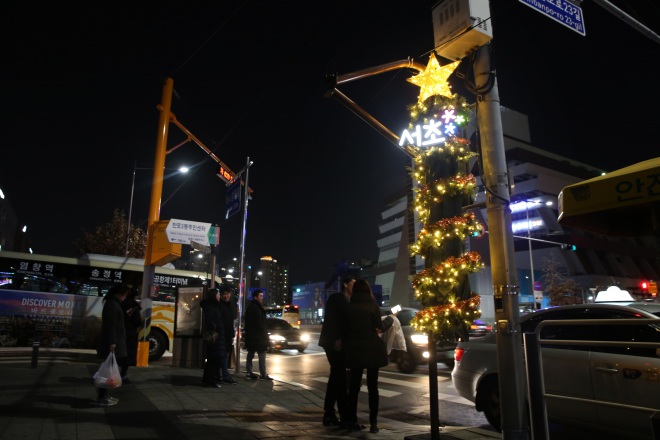 [뉴스카페/이경문기자] 지난 여름 횡단보도 앞 시원한 그늘을 제공해 시민들에게 큰 호응을 받은 ‘서리풀 원두막’ 이 연말 도시의 밤거리를 밝혀주는 ‘서리풀 트리’로 깜짝 변신했다.