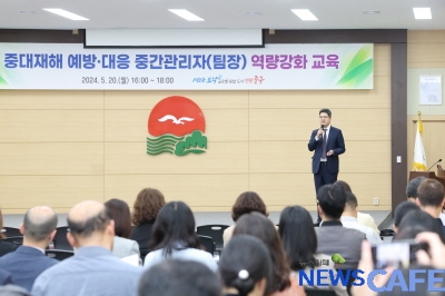 [뉴스카페]인천시 중구(구청장 김정헌)는 지난 20일 중구청 월디관 대회의실에서 중구청과 중구시설관리공단, 중구문화재단 소속 전 팀장들을 대상으로 ‘중대재해 예방·대응 역량 강화 교육’을 실시했다.