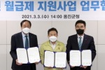 [뉴스카페]옹진군(군수 장정민)은 지난 3일 옹진군청 소회의실에서 인천옹진농협(조합장 박창준)․백령농협(조합장 김정석)과 '농업인 월급제 지원을 위한 업무 협약식'을 가졌다고 4일 밝혔다. 농업인 월급제도는 수확기에 얻게 될 미래소득을 미리 월급처럼 지급받는 제도이다. 농업인은 소득 대부분이 가을철 농작물 수확기에 몰려 있어 다른 수입원이 없는 경우, 평상시 소요되는 영농준비금, 생활비, 자녀교육비 등으로 경제적 어려움을 겪어왔다. 이를 해소하기 위해 ...