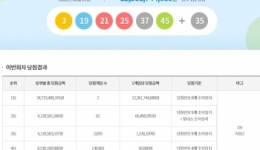 동행복권, 로또1019회 1등 당첨...
