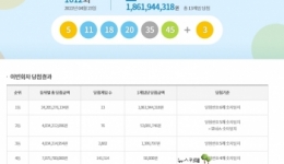동행복권, 로또1011회 1등 당첨...