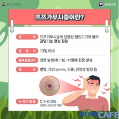[뉴스카페]옹진군(군수 문경복)은 최근 진드기 매개 감염병인 쯔쯔가무시증 환자가 전국적으로 증가함에 따라 관내 농업인 및 야외작업자 등을 대상으로 주의를 당부하였다. 쯔쯔가무시증은 초가을 부화된 털진드기...